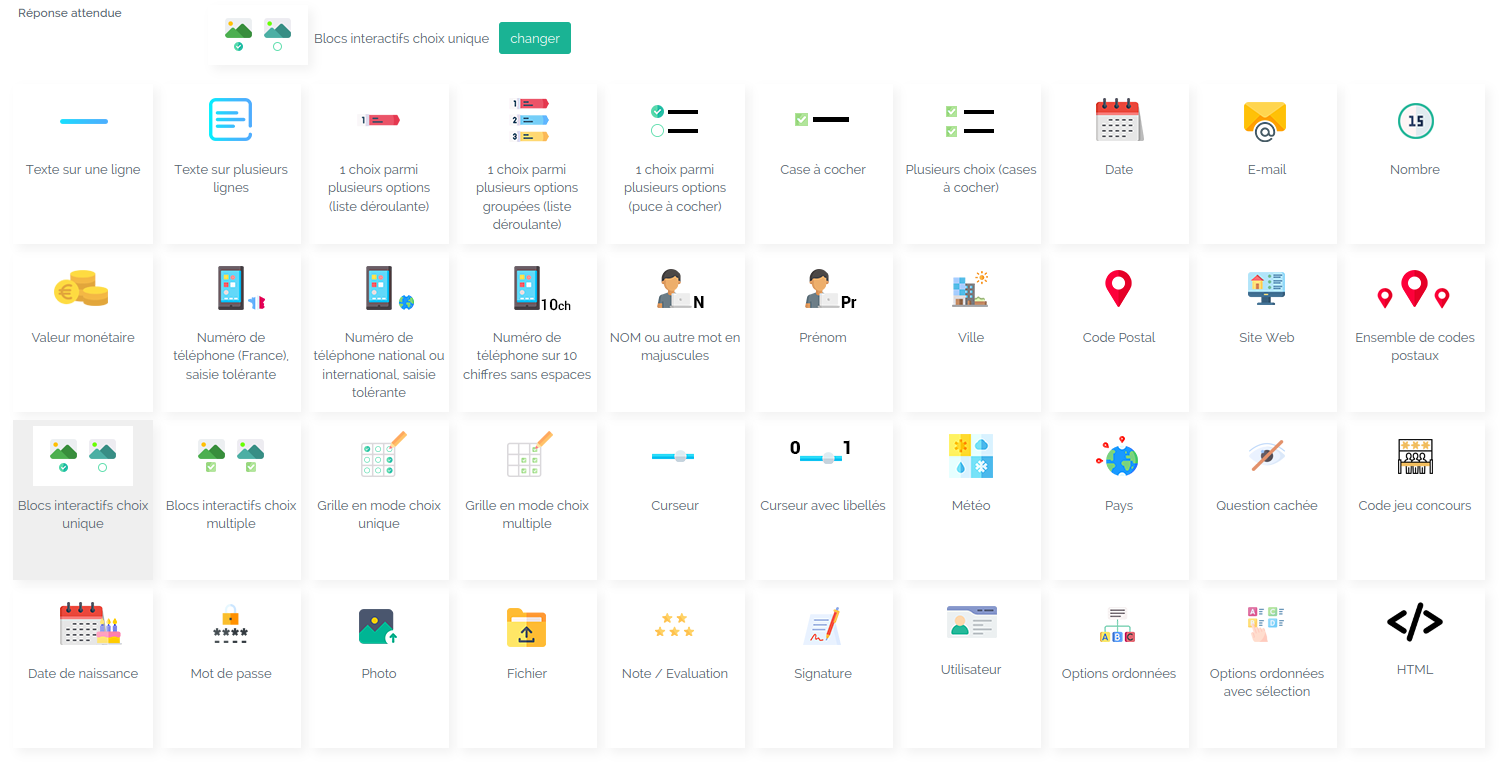 Plus de 40 types de questions sont disponibles dans Hélium Connect :